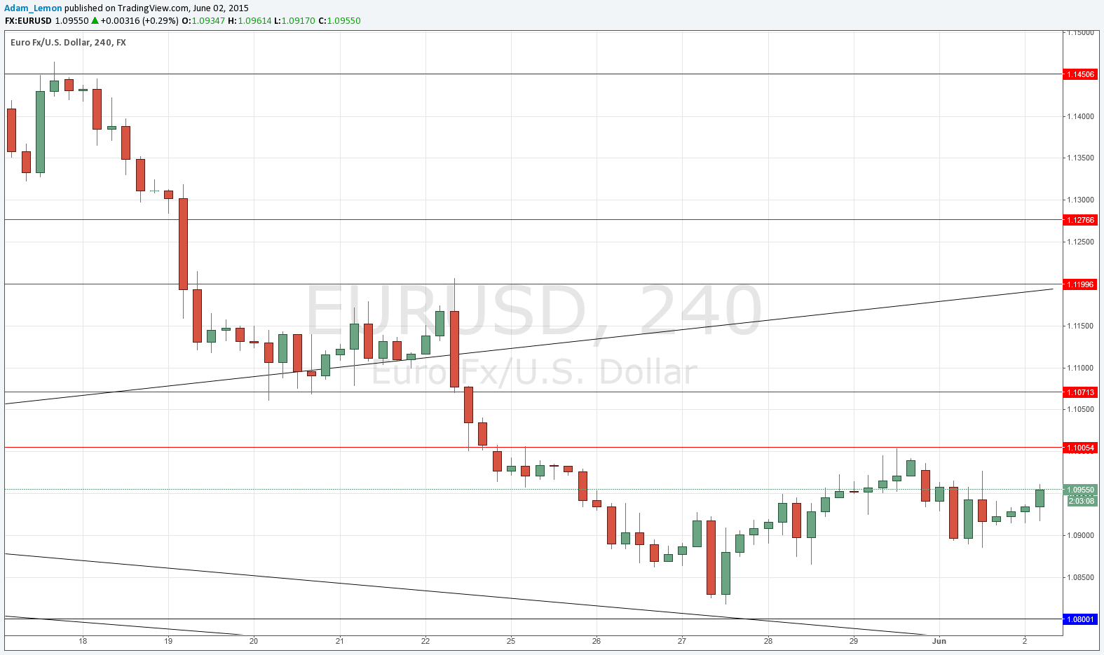 Yesterday’s signals were not triggered as the price never reached either 1.1005 or 1.0800.