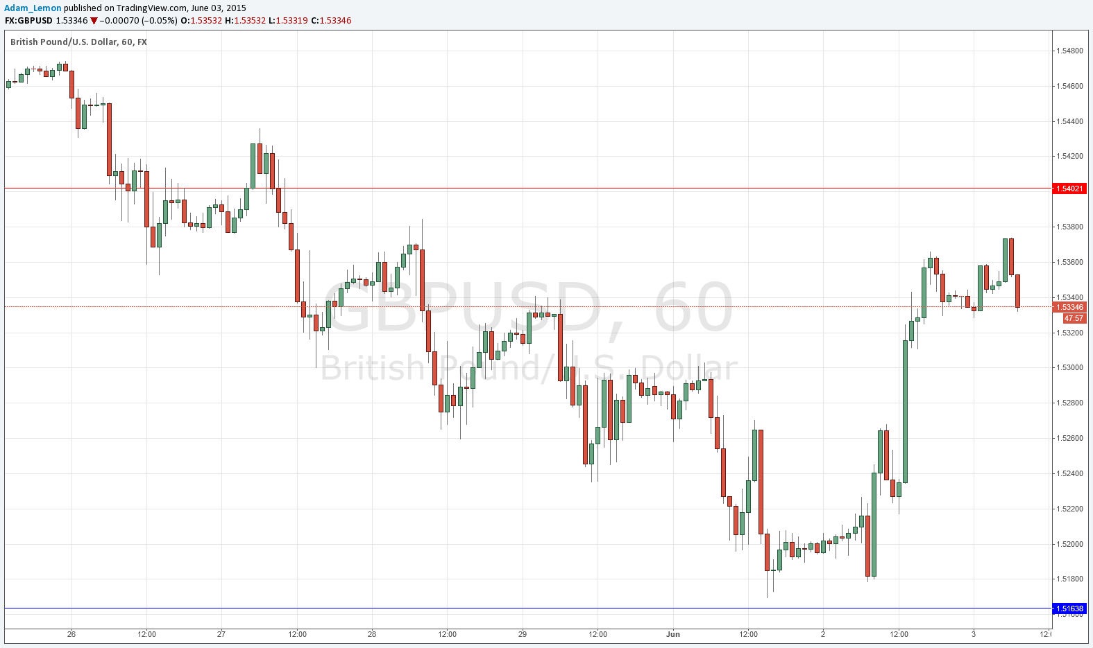 I had thought this pair was due a consolidation period yesterday, but instead it was dragged upwards by the strong advance in the EUR and the general weakening in the USD. It has now reached close to the anticipated resistance level of 1.5402, so it may now fall, but if it does get back up there it could still be a good area for a short trade.