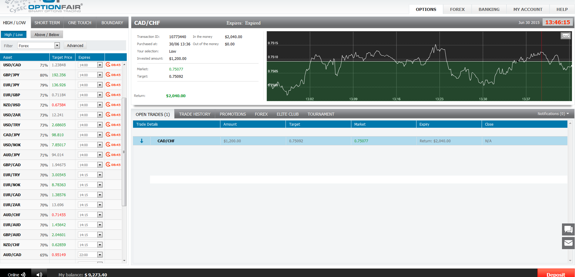 The target price for GBP/CHF at the buying time (13:36) was 0.75092 for the expiration of 13:45. The Asset closed at 1.0.75077 and I won $840.