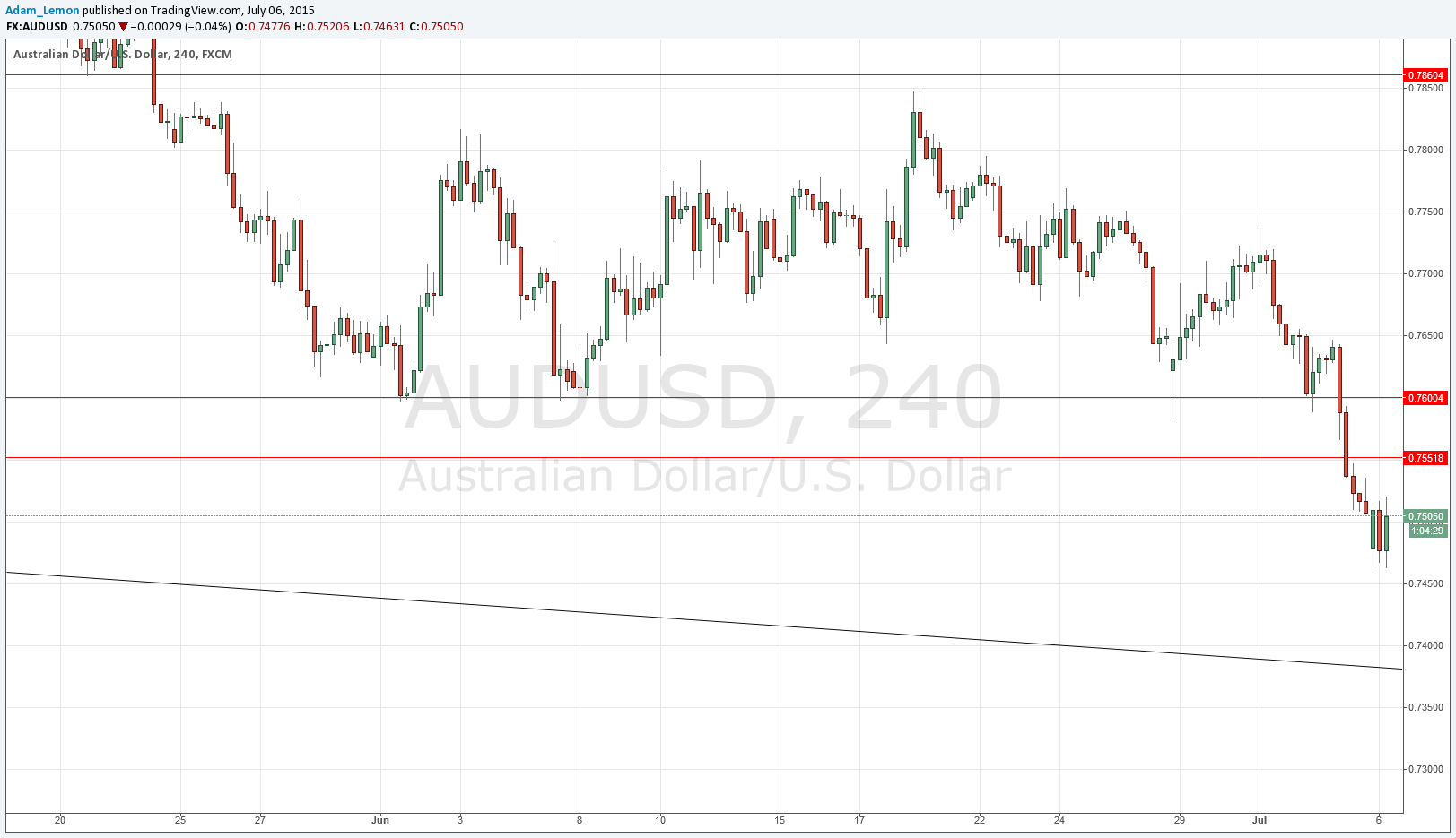 With the release of two items of very poor Australian economic data at the end of last week, as well as the Chinese stock market taking place, the AUD fell quite sharply over the past few days, breaking through key support at 0.7550 which is now likely to have flipped to resistance. Note there is a potentially supportive trend line below that has not been touched for a long time, there is bound to be some reaction if and when the price next gets there.