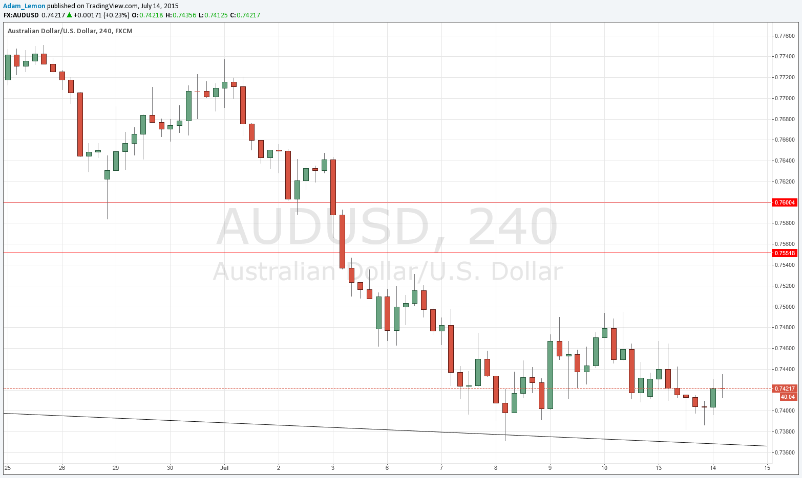 - Long entry following some bullish price action on the H1 time frame immediately upon the next touch of the trend line currently sitting at around 0.7365.