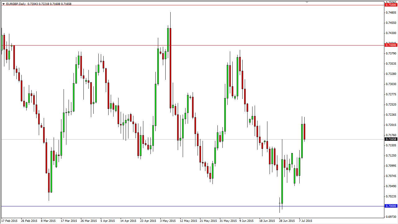 The EUR/GBP pair initially tried to rally during the session on Thursday, but ran into a bit of resistance again at the 0.72250 level. This slight pullback is an overly surprising though, because there has been quite a bit of volatility in the marketplace recently. This is especially true when you are talking about the Euro, because quite frankly the Greek crisis will have a lot of people concerned.