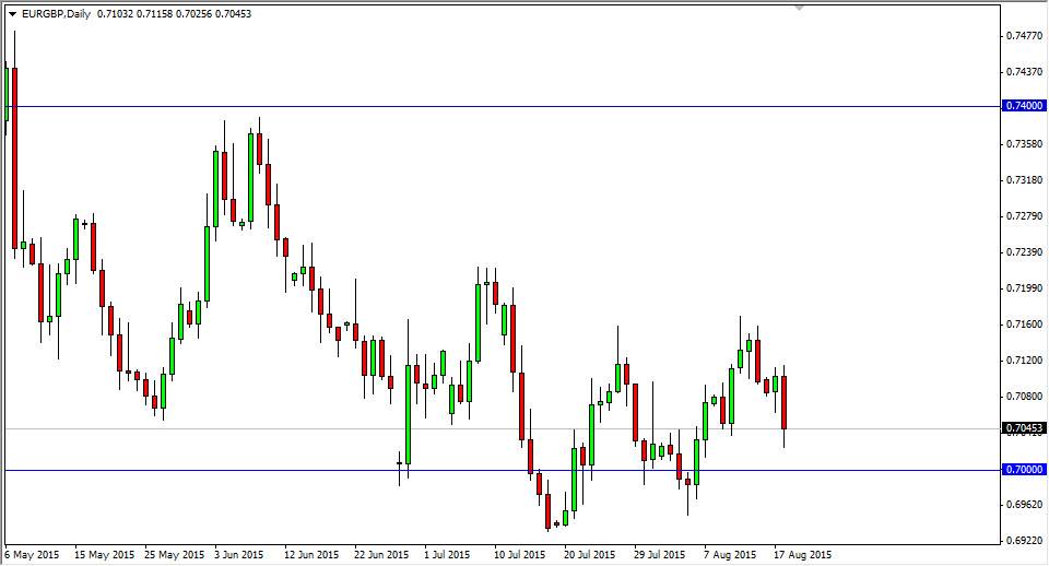 The EUR/GBP pair fell during the Tuesday session, breaking the bottom of the hammer from the Monday session. Because of this, I believe that we will see this market continue to go lower, but I’m not foolish enough to believe that it’s going to be easy going. After all, there is a significant amount of noise right at the 0.70 level, as it is a large, round, psychologically significant number. Yes, the Euro fell during the day significantly, but at the end of the day I think that the Euro still have some resiliency.