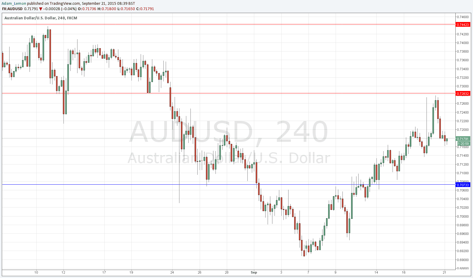 The Australian Dollar has over the course of the past couple of weeks gone from being one of the weakest to one of the strongest currencies – but this is only over a short-term period. Its rise continued as it became clearer and clearer that the Fed would not be raising the U.S. interest rate, although it fell off just below a key resistance level last week.