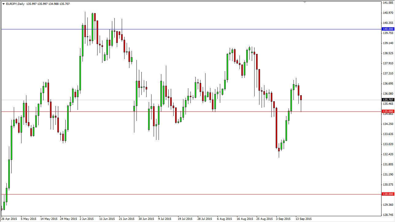 I believe that the 135 level is significant, and although we have broken down below it recently it is pretty important as it is an area that will attract a lot of attention based upon the fact that it is a large, round, psychologically significant number. What I also recognize is that forming a hammer instead of breaking down below it and continuing to drop to the 133.50 level as we have in the past tells me that the buyers have suddenly gotten a lot more aggressive. With that being the case, I do think that we are going higher given enough time.