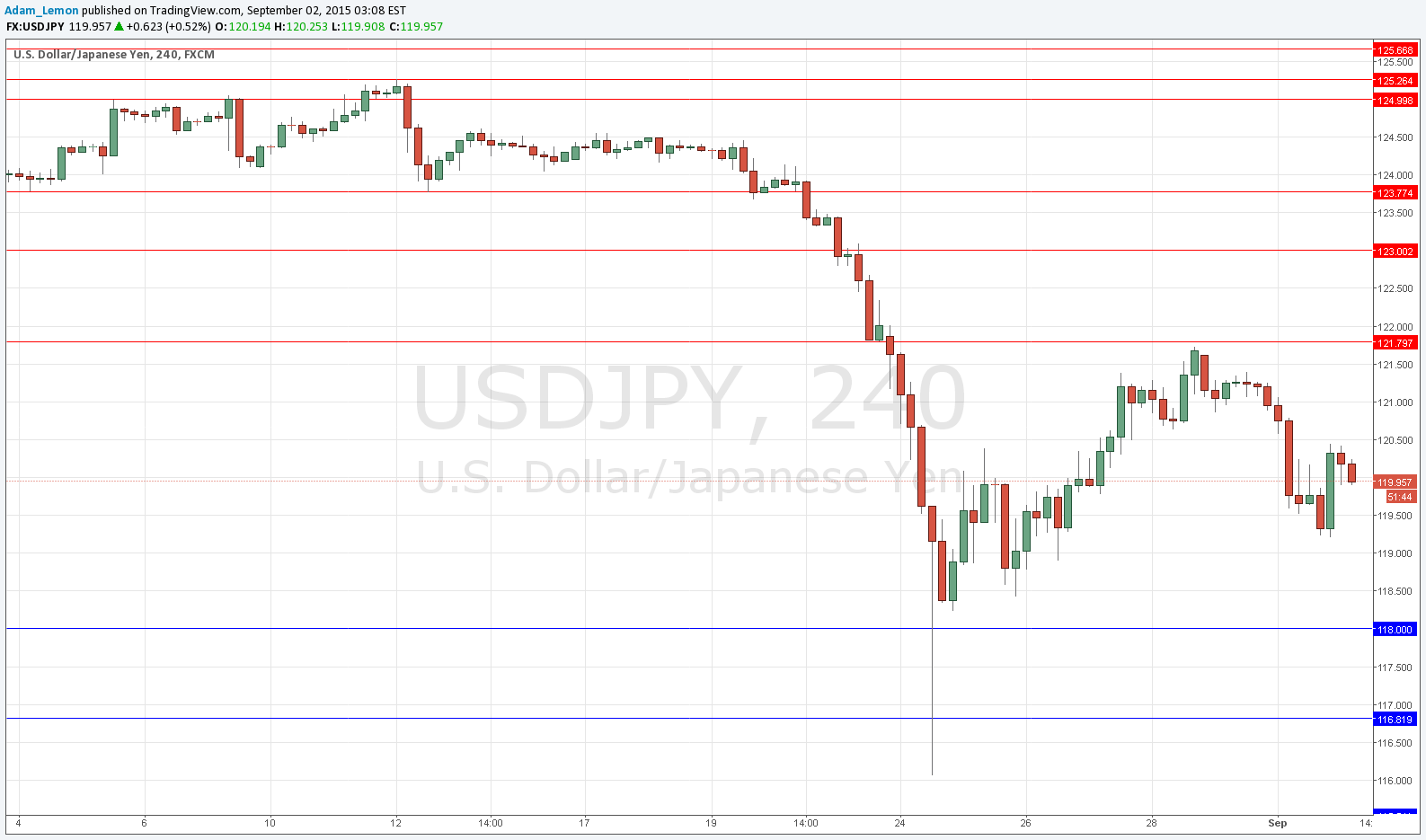 Yesterday continued the pair’s selloff from the level very close to the major resistance that was reached at about 121.75, although there was a pull-back upwards during the Asian session. It appears right now the JPY is strengthening again even though the USD is fairly firm against other currencies. Overall, it is muted continuation of yesterday’s conditions as the market awaits the big USD data releases over the coming days that are quite probably going to be crucial in setting the tone of the Forex market over the coming months, as they will probably determine whether the Fed will raise the interest rate this month or not.