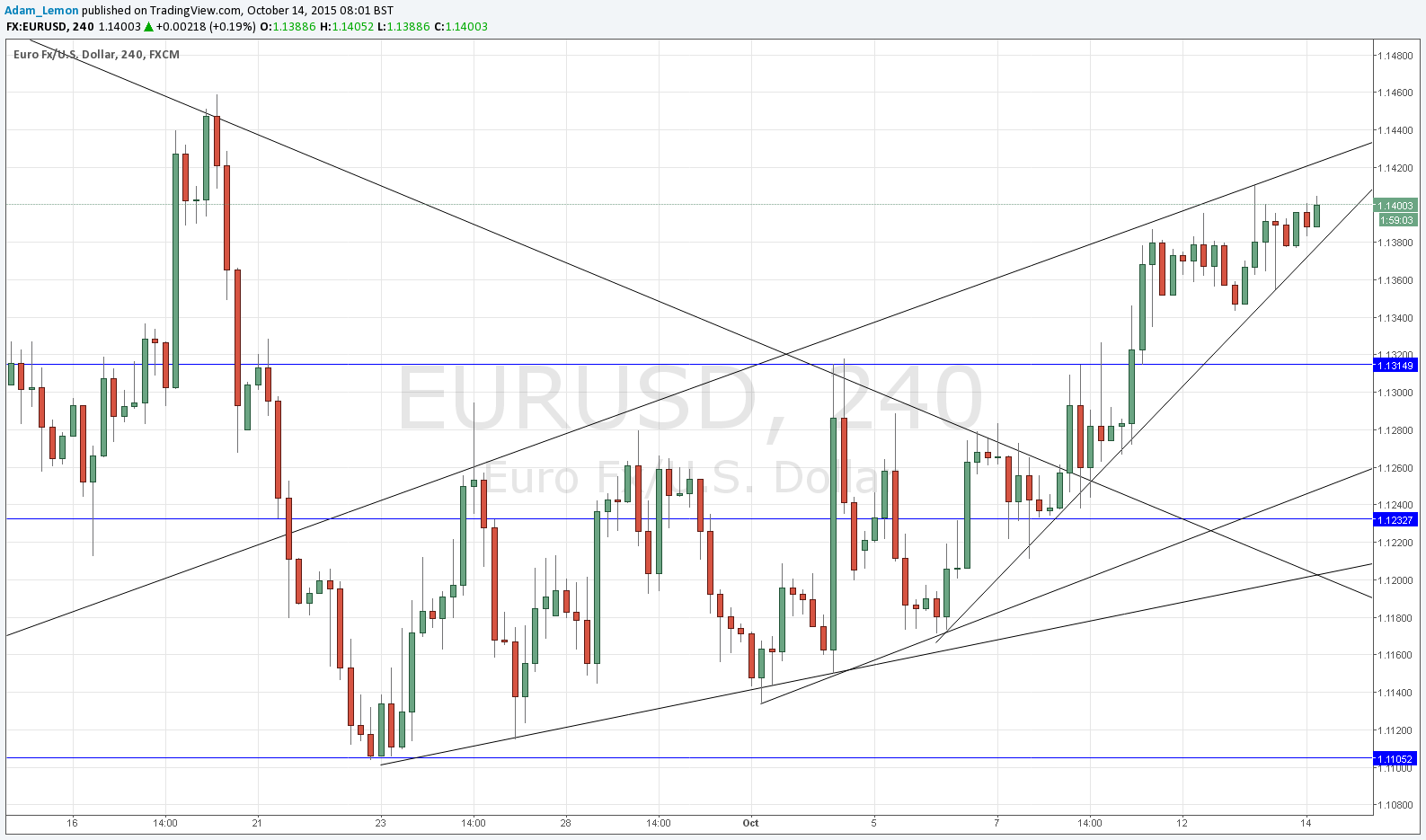 Go long following a bullish price action reversal on the H1 time frame immediately upon the next touch of the supportive trend line currently sitting at around 1.1370.