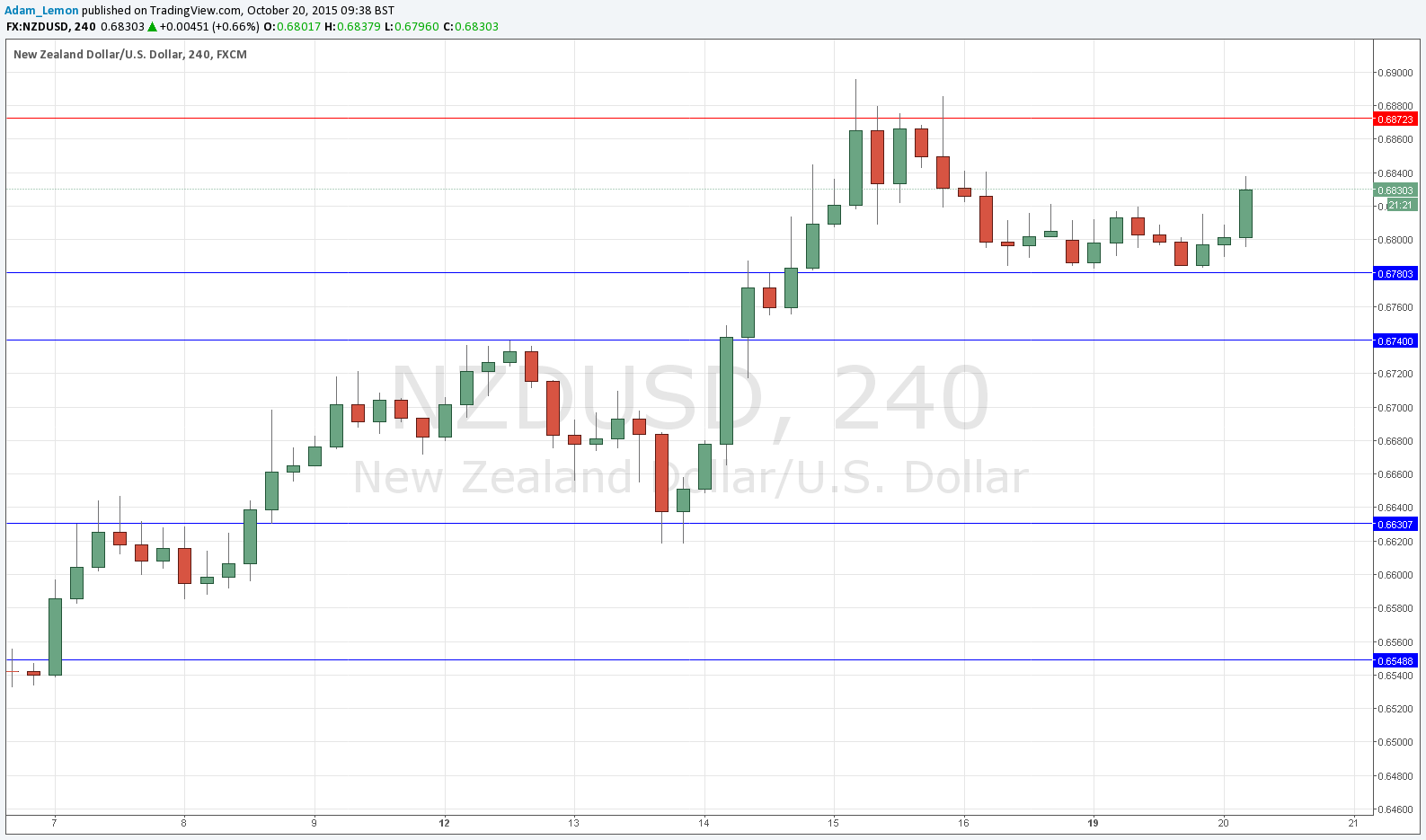 Yesterday I identified minor support at 0.6780.and minor resistance at 0.6825. These numbers have proved to be quite important and are telling a bullish story, as it now looks increasingly likely that we are going to see a move up to 0.6872 provided that the price can break up above 0.6840, which is also showing some minor resistance.