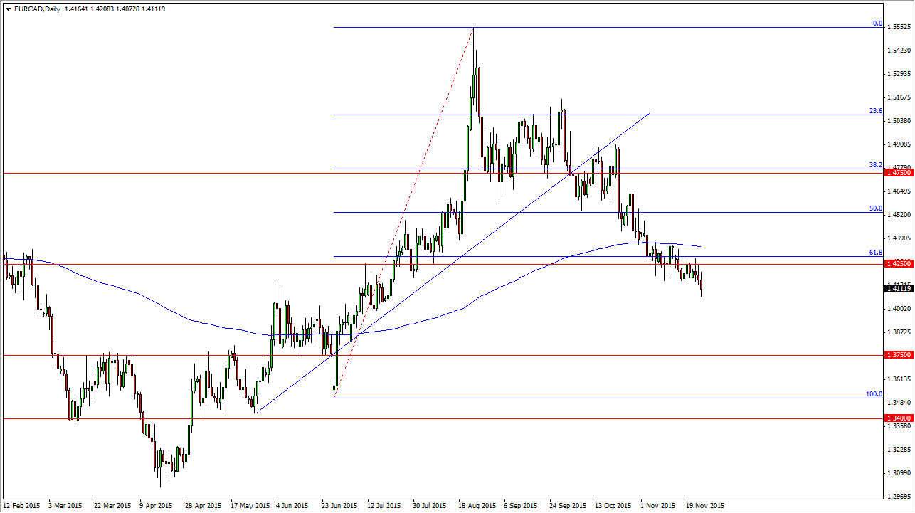 I believe that the market continues to soften from here, and we could roll over a bit during the session on Wednesday. We should find a little bit of support at the 1.40 level based upon the large, round, psychological significance of the number, but I believe the real support will be all the way down at the 100% Fibonacci retracement level which is quite often what we find ourselves reaching towards after a break of the 61.8 Fibonacci retracement level as we have done recently. That sends this market looking for the 1.35 handle.