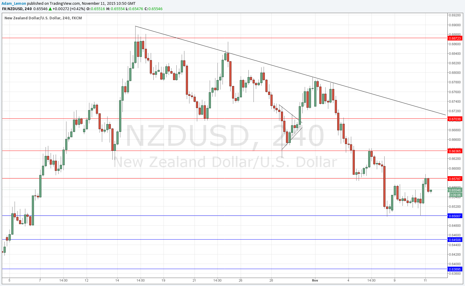 Last night’s RBNZ report pushed the price up a little, after which is bounced off the resistance that eventually held a little higher than I expected, at 0.6579. I am not looking for another short trade there yet.