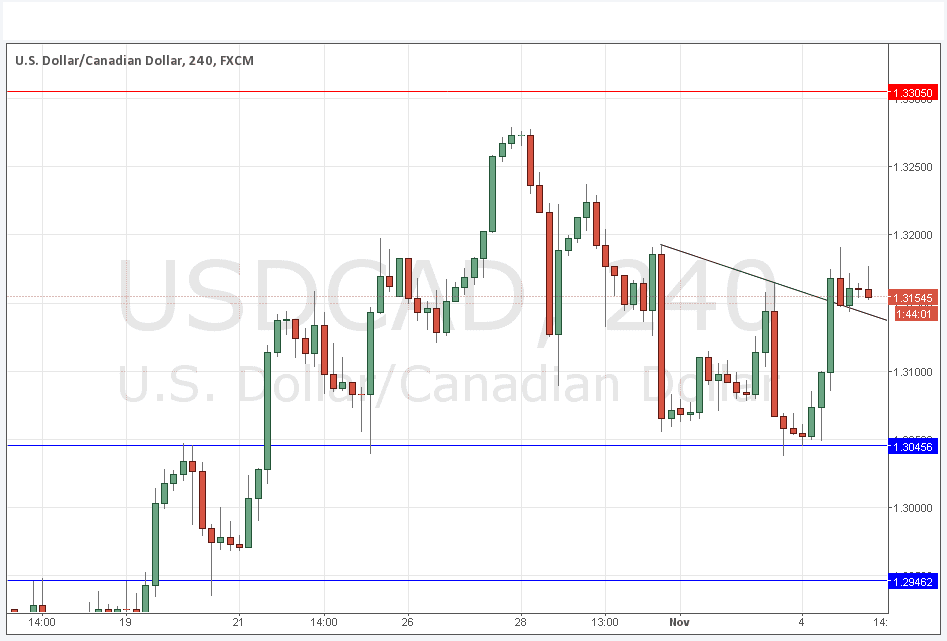 Yesterday’s signals were not triggered as the price never quite reached 1.3046; however that area was wonderfully supportive and was within just a few pips of the low prior to a strong bullish move.