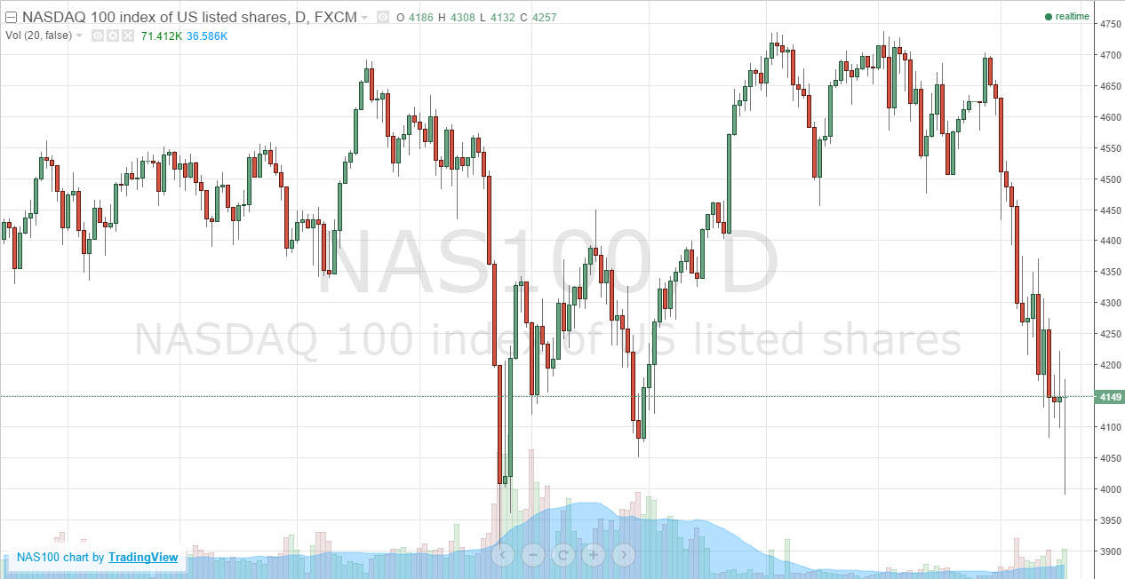 The S&P 500 fell rather significantly during the day on Wednesday, but bounced enough off of the 1810 level to form a massive hammer. Because of this, we have to wonder whether or not we are going to see some type of attempt to turn the market back around. I won’t be buying it though, because it is far too bearish at this point in time in there is far too much in the way of resistance above for me to feel comfortable going long. In fact, I would have to see this market get above the 1950 level in order to feel comfortable at this point.