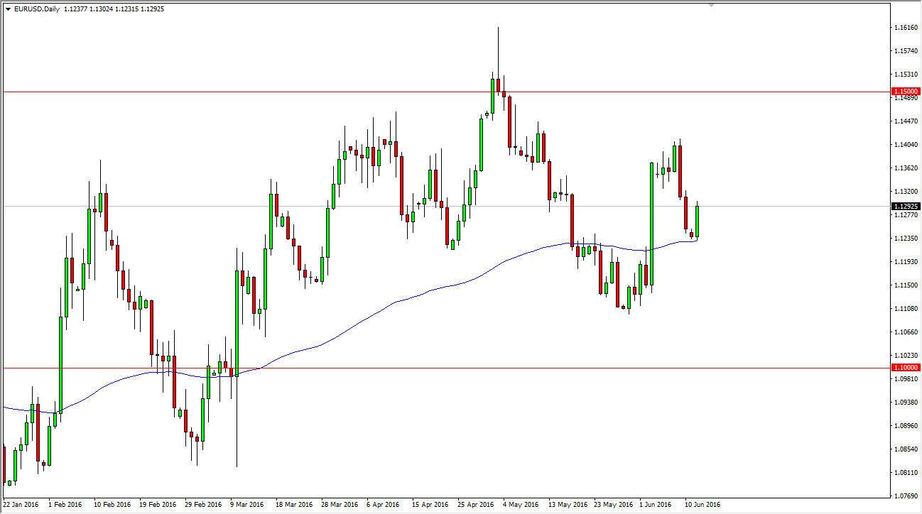 The EUR/USD pair rose during the course of the day on Monday as we bounced off of the 100 day exponential moving average. In that area, we have the 1.12 level, which had been resistive in the past. Because of this, I am not surprised at all to see this market bounce and I do believe that a lot of traders are still going to be concerned about what the Federal Reserve can do as far as interest-rate hikes. It looks as if they won’t be able to raise interest rates as quickly as once thought, so it could work in favor of the Euro overall. Nonetheless, I see a lot of noise above, and I think that the market will struggle at the 1.14 level, and most certainly at the 1.15 level.