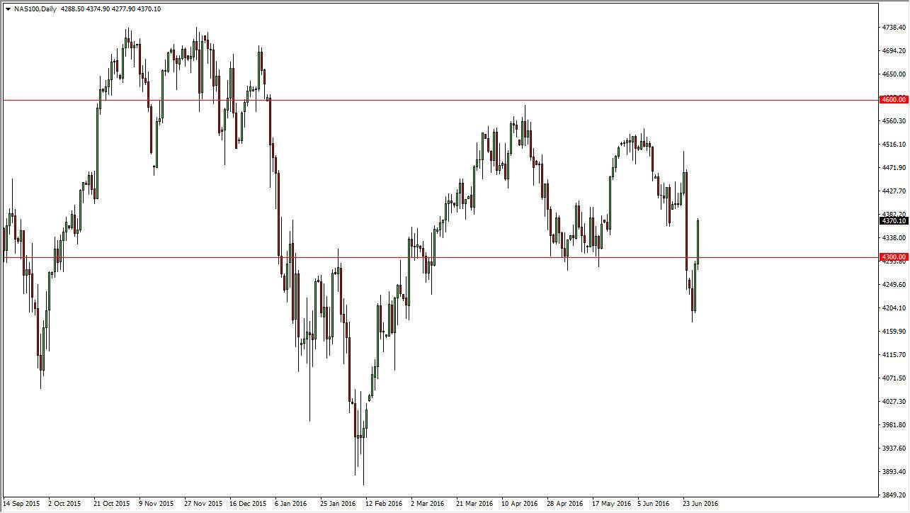 The S&P 500 shot higher during the course of the session on Wednesday, breaking well above the 200 day exponential moving average. Because of this, I feel that the US stock markets will probably continue to go higher. I think that pullbacks in the S&P 500 will offer buying opportunities as we continue to see quite a bit of bullish pressure. After all, most people overseas will look at the United States as a potential opportunity now that European indices should underperform. On top of that, it appears that the markets have calmed down and recognize that the United States should be fairly insulated against the breakup between the United Kingdom and the European Union. The size of the candle is very bullish, and as a result it looks as if the buyers are going to continue to push this market.