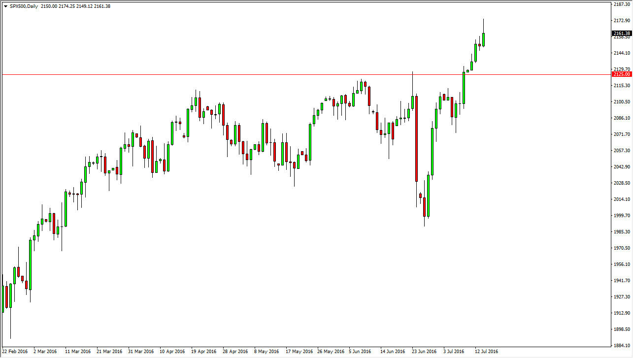 The S&P 500 continue higher during the day on Thursday, as we see quite a bit of bullish pressure. However, we did pullback a little bit during the latter part of the day so it could suggest a perhaps we are starting to run out of steam. At this point in time though, I feel this will only end up being a buying opportunity on the dips, as it should provide “value” in a market that is clearly broken out. Below here, the 2125 level should offer a significant amount of support as it was previously so resistive. I believe that pullbacks will be looked upon favorably by the bullish traders out there, and should be your opportunity to pick up the market “on the cheap.” Ultimately, if we break above the top of the range for the session on Thursday, that is also a buying opportunity as well, although I’d be the first person to admit that perhaps we would begin to be a bit overextended.