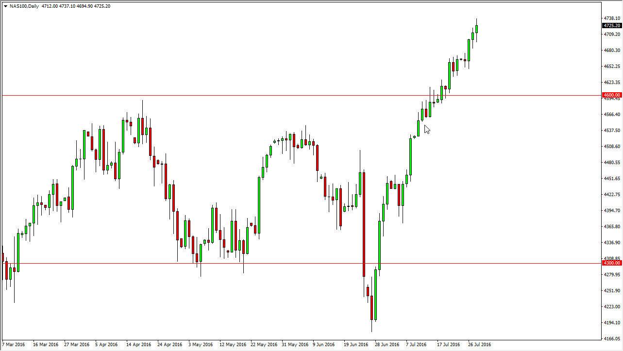 The S&P 500 initially fell during the course of the session on Thursday, but we turned back around to form a hammer. We have seen a hammer for the last 4 sessions, and that suggests that there is more than enough buying opportunities every time we dipped, and a massive amount of support below. With this being the case, it’s very likely that we will eventually break out to the upside. If we break below the bottom of these hammers, it really doesn’t matter, because I see a massive amount of support down at the 2125 handle. Nonetheless, I am “buy only” at this point in time and I have no interest whatsoever in selling. I do think that we eventually go to the 2250 level, but it might be a bit of a rocky road between here and there.