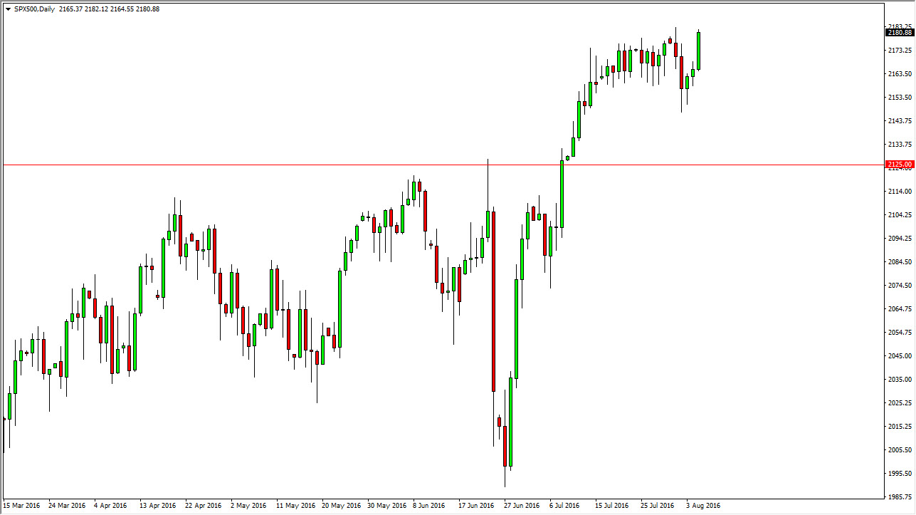 The S&P 500 index rally during the course of the session on Friday, breaking above the 2180 handle. This was in reaction to be stronger than anticipated jobs number, and as a result it looks like we are trying to break out to the upside and perhaps reach to much higher levels. At this point in time, I still have a target of 2250, and believe that as soon as we pullback from rallies, we will more than likely find supportive candles that we can take advantage of based upon “value.” Given enough time, we do go higher and I believe that this market has a “floor” at the 2125 level below.