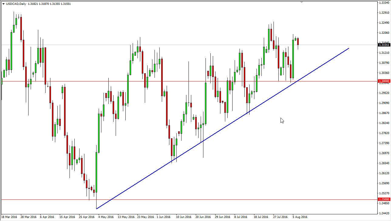 Obviously, the crude oil markets are very important for the Canadian dollar, mainly because of the export of Canadian oil into the United States itself. With this being the case, I believe that the United States dollar will continue to climb against the Loonie, simply because the oil markets have given us a lot to worry about. Beyond that though, we also had a strong US jobs number for the month of July, while we had an actual loss of Canadian jobs during that same month. In other words, it makes sense that we continue to go higher.