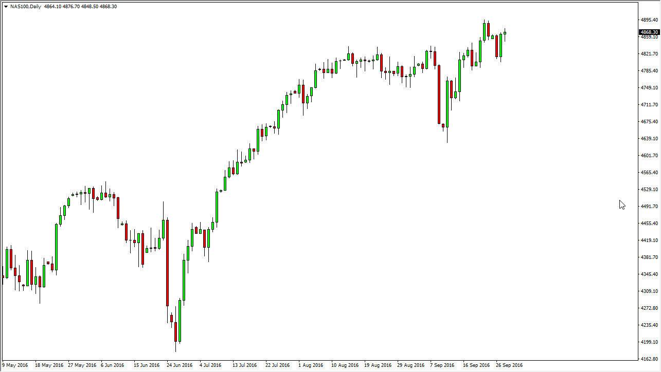 The NASDAQ 100 went back and forth during the course of the session as well, but as you can see we are trying to find enough momentum to go higher, as the 5000 level is by far my longer-term target anyway. I believe that pullbacks at this point in time should continue to be buying opportunities, as the interest-rate environment of course is very attractive for stocks. On top of that, the NASDAQ 100 has outperformed the other indices that I follow so I think that we are going to continue to see quite a bit of “hot money” flow into this market going forward.