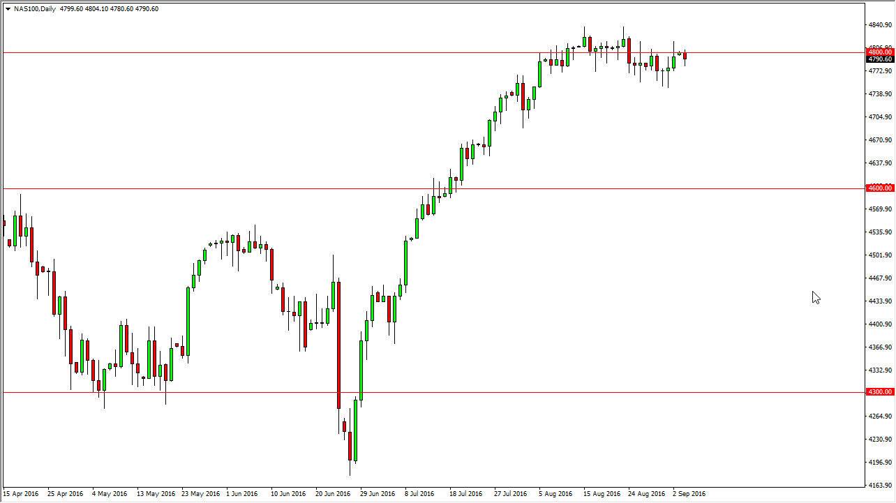 Obviously, the S&P 500 didn’t do anything during the day on Monday as Americans and Canadians step away for the Labor Day holiday. However, we recently seen this market go sideways for some time now, and it looks as if we are trying to build up enough momentum to continue going higher. A pullback from here should find plenty of support near the 2050 handle, and as a result it’s likely that the market falling is simply going to be an opportunity to pick up value and a market that I think goes higher due to interest-rate expectations being so low. With this, it’s likely that we will try to reach towards the 2250 level given enough time and I do have that as my target going forward.