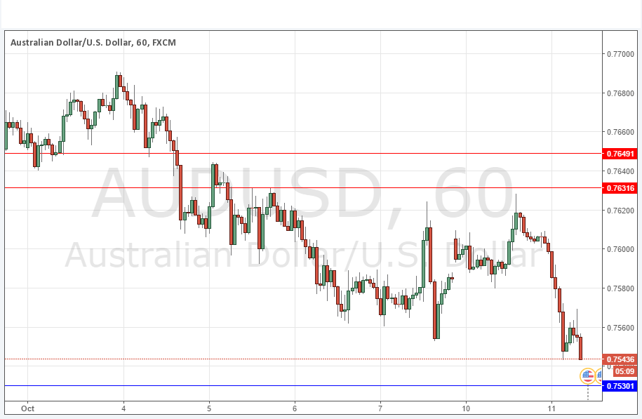 Go long following some bullish price action on the H1 time frame immediately upon the next touch of 0.7530.