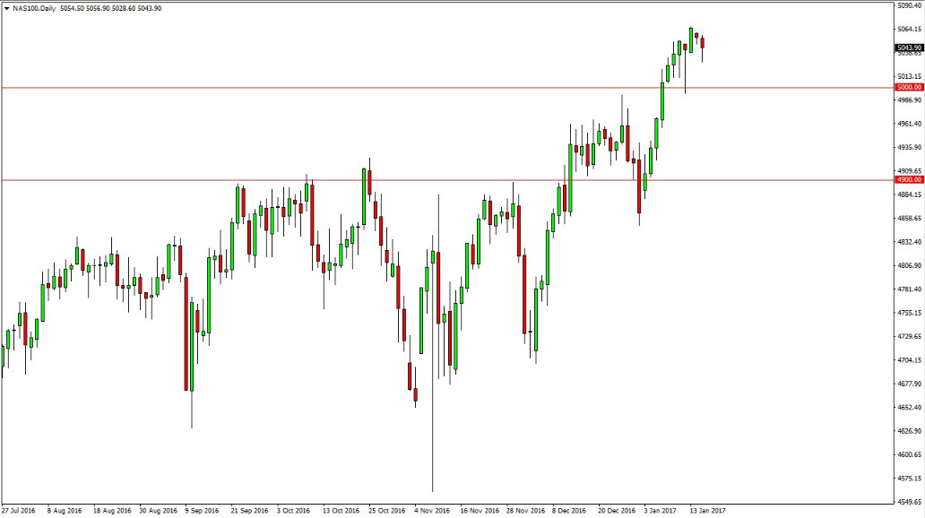The NASDAQ 100 fell slightly during the session on Tuesday, as we continue to see buyers enter this market. The NASDAQ 100 is currently leading all US indices higher and I believe that there is a massive amount of support starting at the 5000 level below. That support should extend all the way down to the 4950 handle, so I’m waiting for buying opportunities based upon bounces and supportive candles. If we break out to a fresh, new high am also buying there. The NASDAQ 100 looks like it is going to continue to lead the way higher for US indices overall, so I have no interest in shorting.