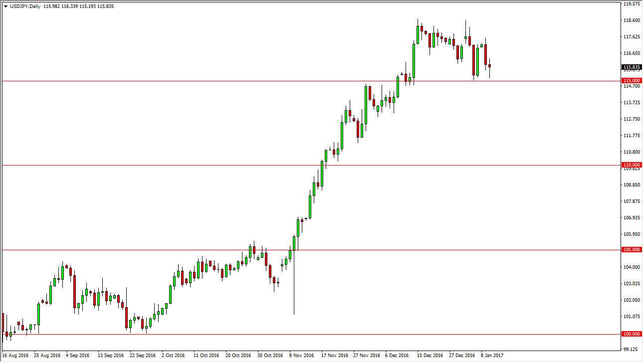 The USD/JPY pair went back and forth on Tuesday, testing the 115 level for support. The resulting candle looks a bit like a hammer, and that hammer of course could be a nice buying opportunity as we see so much in the way of support just below. I think the support goes all the way down to the 111.50 level, and of course the Bank of Japan and its massive quantitative easing program should continue to favor an upward trajectory when it comes to this currency pair. We have recently had a bit of a pullback, and quite frankly it could continue. Because of this, I am patiently awaiting a signal to start buying again, and a break above the top the candle from Tuesday would be that signal. Otherwise, I will look for areas below the show signs of support to go long.