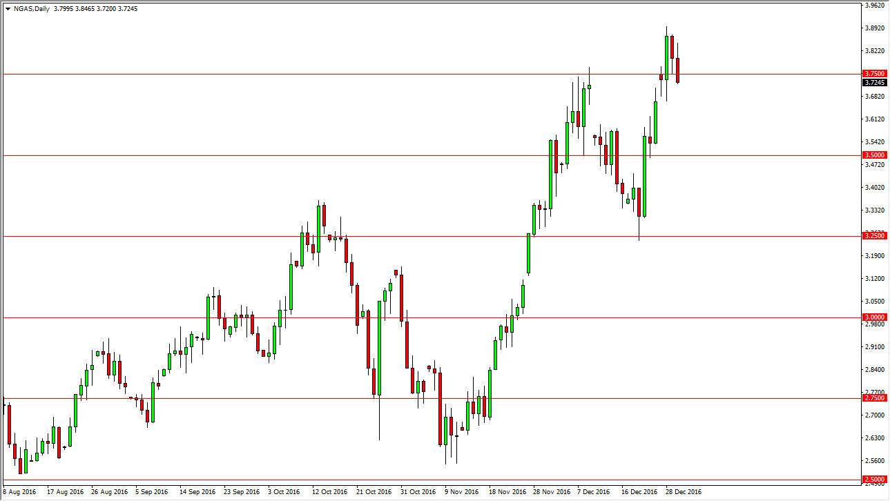 The natural gas markets initially tried to rally and Friday but then turned around to crash through the $3.75 level. With the lack of liquidity for the session on Friday, I find it very difficult to read too much into this trade. A break down below the $3.65 level should send this market to the $3.50 level going forward. Colder temperatures coming in the month of January will probably drive up the price in the short-term, but I think that there is a lot of noise between here and the $4.00 level, so given enough time the sellers will return. I think this will be a very volatile back-and-forth type of market over the next several weeks, but I have to believe that there is still more than enough bullish pressure underneath the keep this market going higher in the short-term.