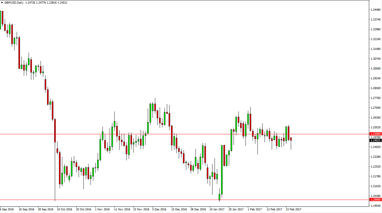 The EUR/USD pair rallied at the open on Monday, but started to run into a significant resistance at the 50-day exponential moving average. This is an area that has caused resistance in the past, and therefore I’m looking for exhaustive candles to start selling. I believe that currency traders will continue to punish the EUR in general, because quite frankly there is a lot of concern when it comes to French and Dutch elections. The rising anti-EU sentiment in the populace has bond traders thinking that perhaps the EU won’t last. I must agree, but I don’t think it’s going to happen tomorrow. Short-term rallies should continue to be selling opportunities, but I think that the 1.05 level underneath will continue to be difficult for the sellers to overcome.