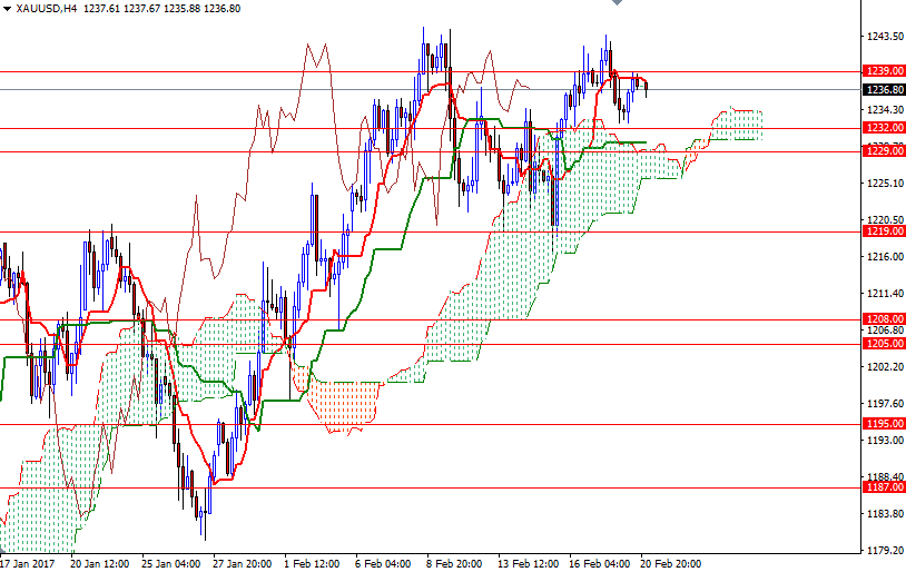 Gold prices ended slightly higher Monday but the trading range was relatively tight as the U.S. markets were closed for a public holiday. The XAU/USD pair swung between the $1232 and $1239 levels. The rising political risks across the globe lend some support to the market but steadily climbing world stock markets and a firming U.S. dollar continue to work against the precious metal. It appears that the market will remain range bound as investors turned their focus to the release of minutes of the Federal Reserve’s latest policy meeting.