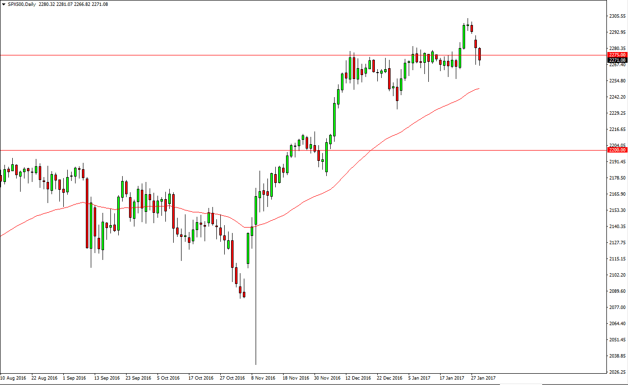 The S&P 500 falling during the session on Tuesday shows that we still have a bit of exhaustion in the market, but I think there is more than enough support all the way down to the 2250 level to cause a bounce sooner rather than later. Once we break above the 2275 handle, I feel that the market will continue to reach towards the 2300 level I don’t know to in the text above, and with that being the case could go much higher than that. The 50-day exponential moving average has been offering dynamic support, and it is coming close to the bottom of the trading range currently. I have no interest in selling the S&P 500, I believe that US indices overall will do much better than global indices.