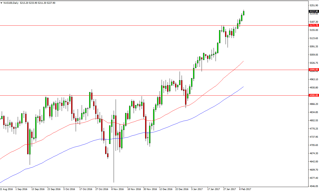 NASDAQ 100 traders pushed higher yet again during the day on Friday, as we have now broken above the 5200 level. I believe it’s only a matter of time before we reach towards the 5500 level. I think that a pullback from here should send this market reaching towards the “floor” at the 5172 level which was the previous resistance. I like this market alive, and it has been a leader when it comes to indices in the United States, and the rest of the world. Quite frankly, as long as the NASDAQ 100 market continues to show strength, all US indices should.