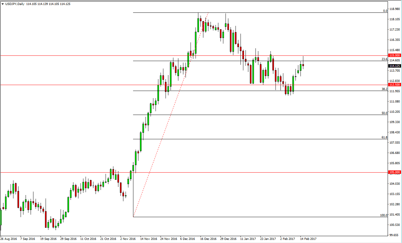 The US dollar initially rallied against the Japanese yen but found the 115 level to be far too resistive to continue going higher. This was an area that I recognized as resistance previously, so the fact that we formed a shooting star isn’t exactly surprising. However, I believe that this will be a simple pullback that offers buying opportunities based upon supportive candles or bounces below, and I will be looking for opportunities to go long. Alternately, if we break above the 115 handle, I feel the market will continue the moved to the upside, perhaps extending all the way to the 118.50 level over the next several weeks. I have no interest in selling this market, I believe that with the Federal Reserve looking likely to raise interest rates this year, this pair should continue to rise.
