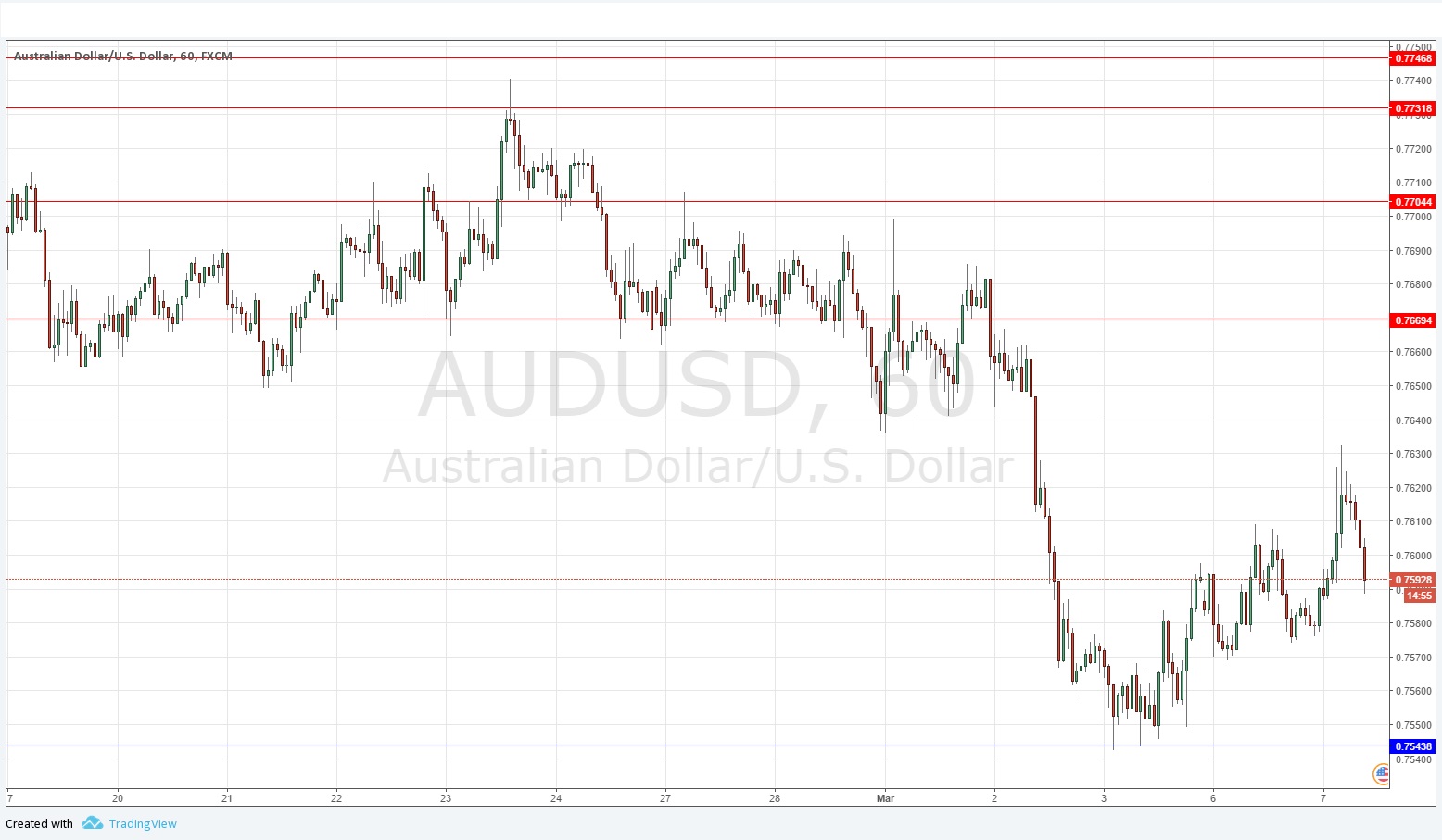 Yesterday’s signals were not triggered as there was insufficiently bearish price action at 0.7606.