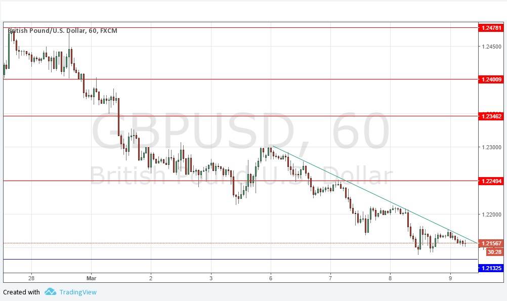 Go long following a bullish price action reversal on the H1 time frame immediately upon the next touch of 1.2133.