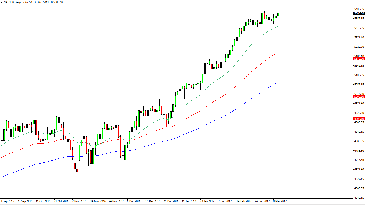 The NASDAQ 100 broke higher during the day on Friday, breaking above the top of the hammer from the Thursday session. We tested the 5400 level, but I think it’s only a matter of time before we can break above there. Pullbacks offer value in a very strong market that has been leading the US indices higher overall, which by extension has been leading stock markets around the world to the upside. I think pullbacks are nice buying opportunities, and that the 20-day exponential moving average on the chart continues to offer support.
