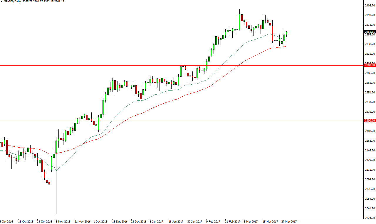 The S&P 500 had a positive session on Wednesday, as we continue to grind higher. The 20-day exponential moving average continues to offer dynamic support, but I think we may have more of a sideways grind than anything else coming up. I look at pullbacks as short-term buying opportunities but I expect the volatility to continue. I have no interest in shorting and I believe that the 2300 level below is massively supportive and essentially the “floor.” I believe that the market is going to go looking for the 2400 level, and today’s action was very positive considering how volatile it was at times.