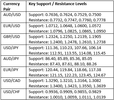 We teach that trades should be entered and exited at or very close to key support and resistance levels. There are certain key support and resistance levels that should be watched on the more popular currency pairs this week, which might result in either reversals or breakouts: