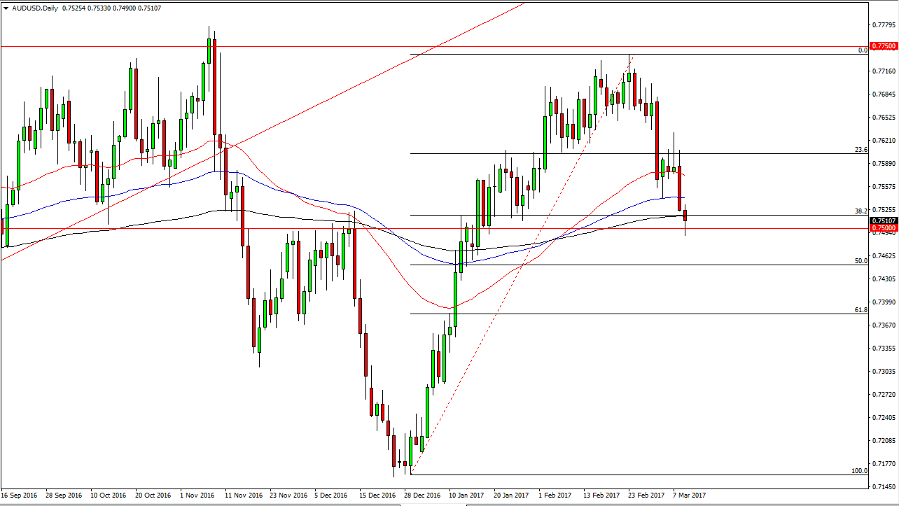 It’s not likely that I will be trading this market today, unless of course we get a significant bounce. Selling just isn’t going to be countable until we breakdown below the 0.74 level, and I don’t know that we get there today. However, this is certainly a market worth paying attention to.