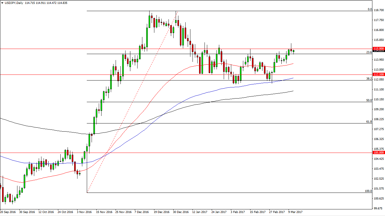 The USD/JPY pair initially fell on Monday but turned around to form a positive candle. Because of this, the market looks as if it is going to try to reach above the 115 level again. If we can break above the top of the shooting star from Friday, I believe that this market continues to go much higher. Until then, it would not surprise me at all if we get a pullback some time to time. On the other and, if you can break above the top of the shooting star, the market will more than likely reach towards the 118.50 level again. I believe that the 50-day exponential moving average below should continue to offer dynamic support.