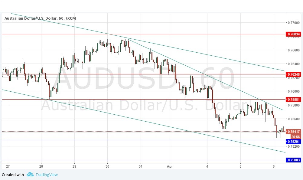 Yesterday’s signals were not triggered as unfortunately the price never quite reached the anticipated resistance level of 0.7588.