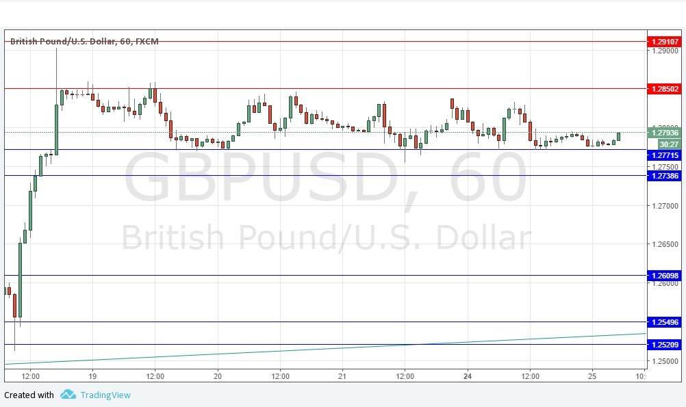 Yesterday’s signals were not triggered as the price level of 1.2772 was never quite reached. However, if a long trade had been taken from that area, it still looks valid as at the time of writing.