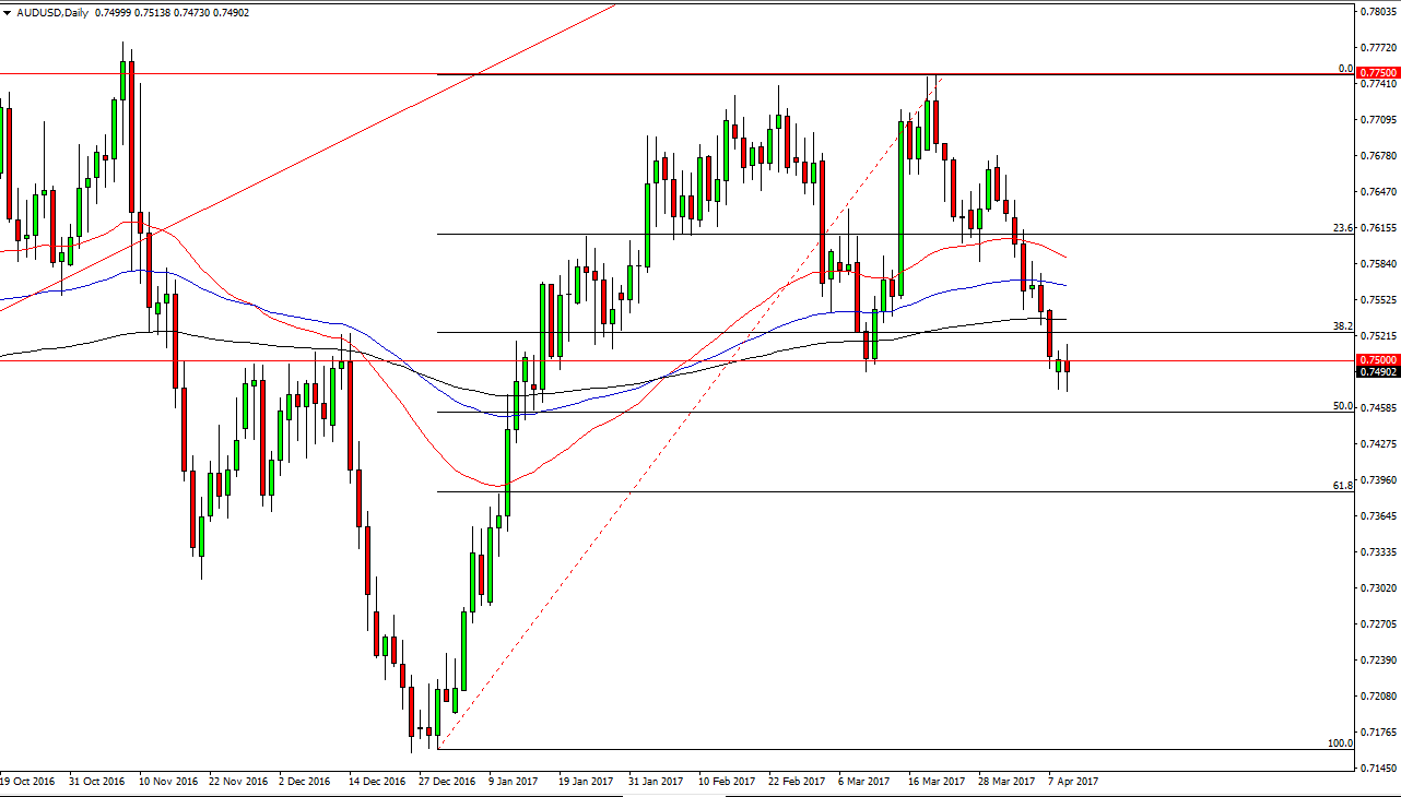 The Australian dollar went back and forth during the day on Tuesday, as we slam around beneath the 0.75 level. I find this to be an interesting move, mainly because the gold markets did manage to break out to the upside, but that did not help the Australian dollar as this seems to be more of a “risk off” type of situation. If that’s the case, we will more than likely go lower but I think it will be difficult as there are a lot of trades just below that could cause support. A break above the top of the candle is bullish, but I also recognize that would be a very choppy move just waiting to happen. I think that this pair is probably best left alone and the short-term, as it will have to decide as to where once to go longer term. In the meantime, I believe that both the Australian dollar in the New Zealand dollar are probably dangerous markets to put any real money to work and as I would anticipate lots very choppy conditions.