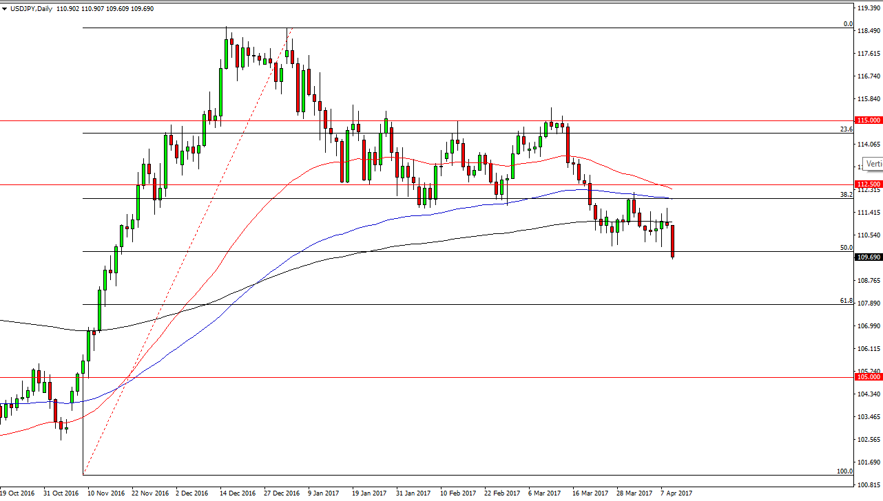 The USD/JPY pair had a very rocky session for the day on Tuesday as we finally broke the law you 110 handle. By doing so, it shows that there is building downward pressure on this market, and it’s likely that we will continue to struggle to rally. I believe that short-term rallies will be selling opportunities on signs of exhaustion, and it’s likely that we will go to the 61.8% Fibonacci retracement level underneath, reaching towards the 108-level underneath. Because of this, I believe that this market is very difficult to start buying, and as a result I think it’s only a matter of time before the sellers assert there will in a market that clearly is showing a bit of risk aversion at the moment.