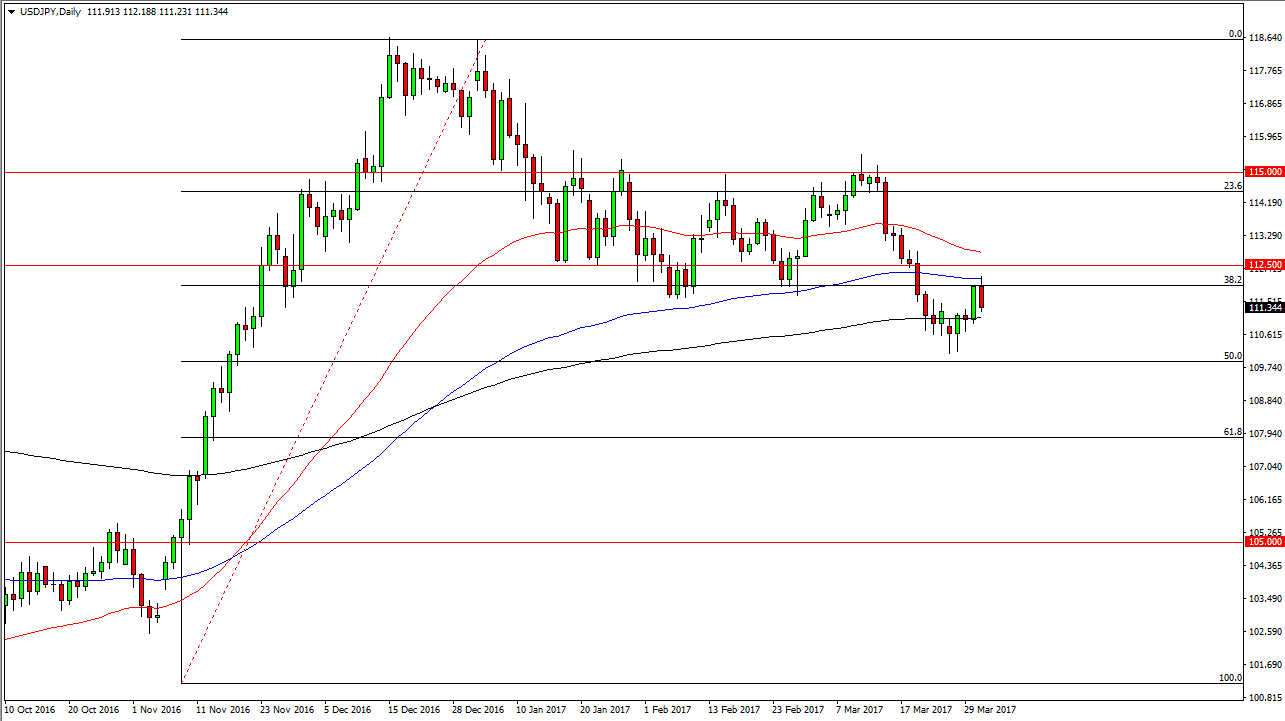 The USD/JPY pair initially tried to rally during the session on Friday but found enough resistance at the 100-day exponential moving average to turn things around. This is a market that has a significant amount of support at the 200-day exponential moving average below, and of course the 50% Fibonacci retracement level at the 110 level. Ultimately, I believe that if we can break above the 112.50 level, that would be a very bullish sign and the market will probably reach towards the 115-level given enough time. Alternately, if we break down below the 50% Fibonacci retracement level, the market should then go to the 61.8% Fibonacci retracement level down at the 108-level underneath.