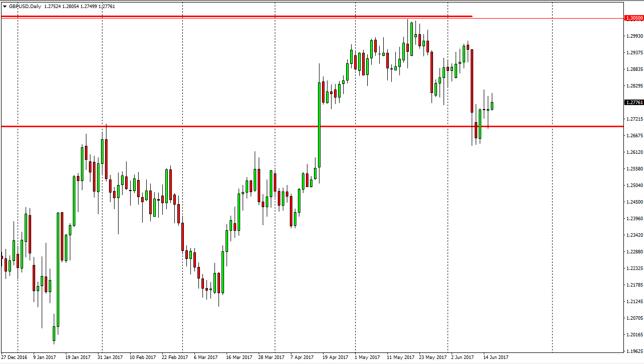 The EUR/USD pair rallied on Friday, bouncing off the 1.1150 level. The market should continue to see volatility, and I believe we can ago reaching towards the 1.13 level above which has been massively resistive. To break above there since the market looking towards the 1.15 level above, which is the longer-term resistance barrier on the longer-term consolidation that the market has been following for almost 3 years. Breakdown below here could send this market to the 1.10 level underneath, which is reasonably supportive as well. Ultimately, the market should continue to find significant amounts of choppiness, but I still believe that there is an upward bias overall. I don’t think that we will break above the 1.15 handle above, so at that area I would be looking at selling once we get there. In meantime, I think you are going to have to deal with quite a bit of back-and-forth high-frequency trading.