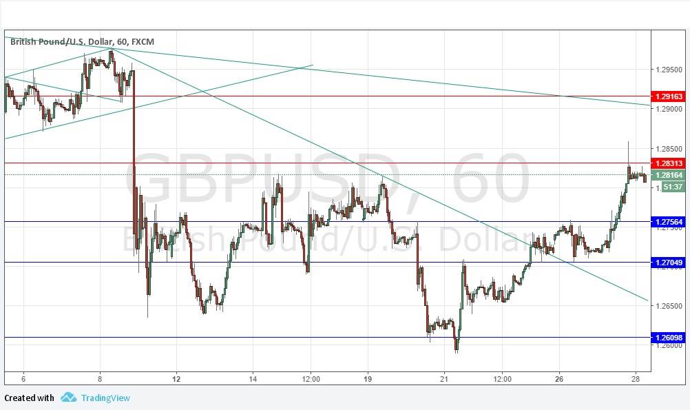 If there is a break above 1.2831 and the price reaches the area above 1.2900, this is confluent with a long-term resistant trend line, so could also be strong resistance, especially at 1.2916.