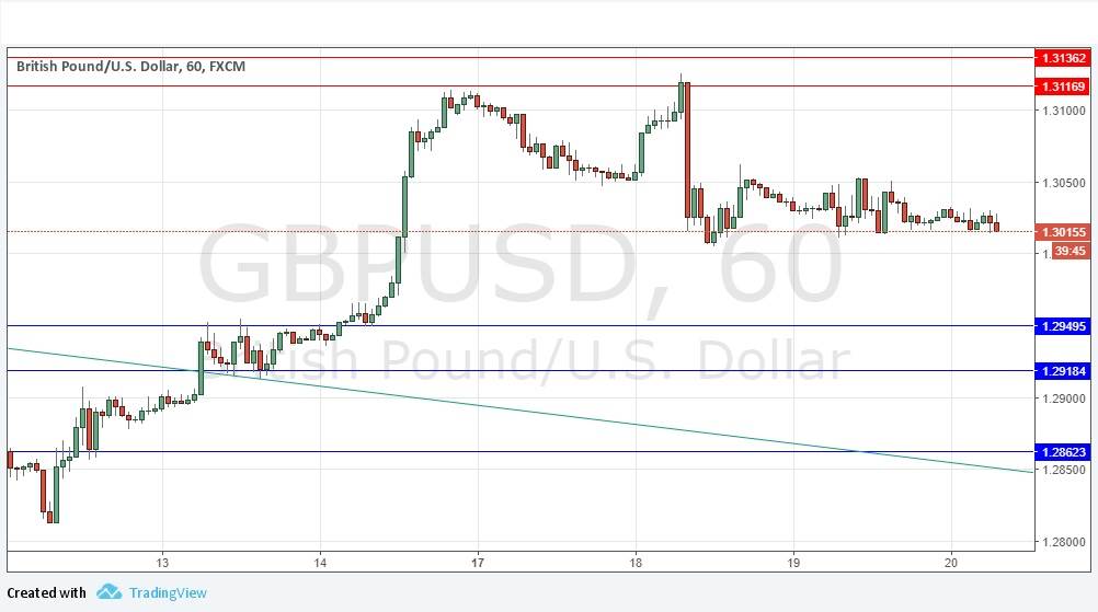 I predicted yesterday that the price would probably move sideways today and it really has been extremely flat, going nowhere. The Pound has been one of the weakest currencies recently, even weaker than the generally weak U.S. Dollar. The price should get some direction when British Retail Sales data is released during the early part of the London session. I see the cluster of resistance levels above 1.3117 as likely to provide strong resistance, so a fast move up to this area followed by a failure to rise higher could provide an excellent short trade entry. There is also minor resistance at 1.3050.