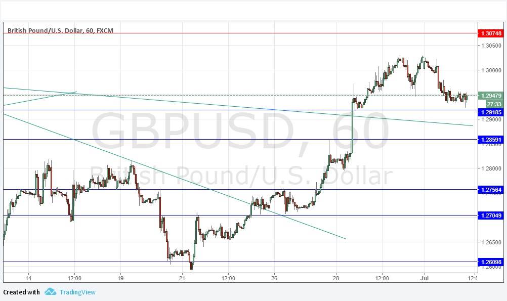 - Go long following a bullish price action reversal on the H1 time frame immediately upon the next touch of 1.2946 or 1.2859.
