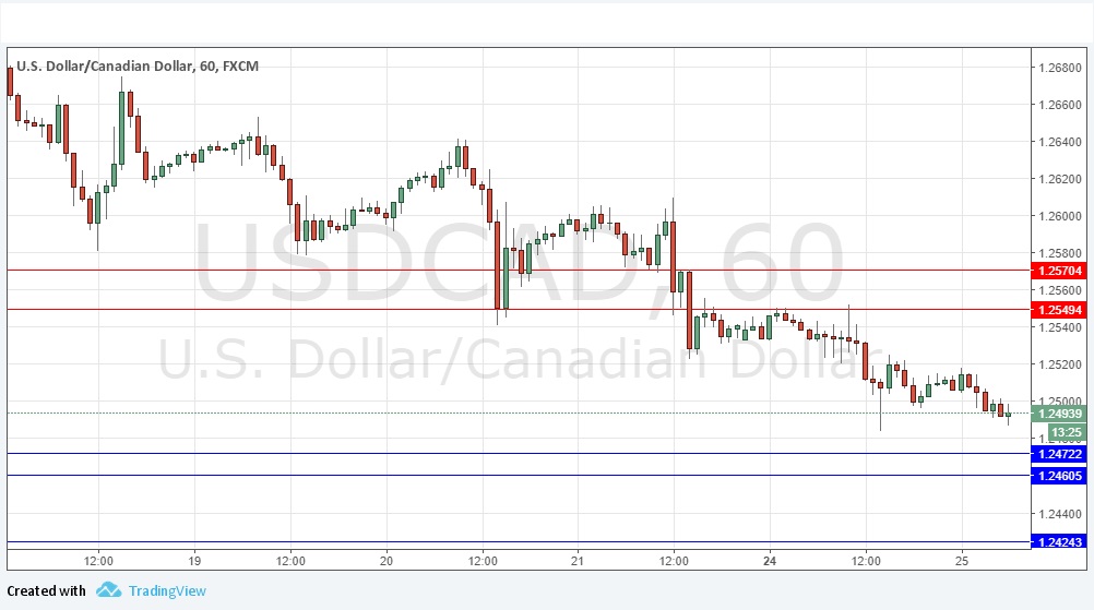 The strong downwards trend continues, with the price action giving us no hint that it is coming to an end. The price continues to make new long-term lows and only quite shallow retracements. Although the pace has slowed, another bearish sign has been the erasure of the nearest former support level at 1.2500. Therefore, the best opportunity is likely to be a short trade following a retracement to and rejection of the new resistance level at 1.2550. It would be wise to be extremely careful before taking any long trades at all, and waiting until there is a very strong bullish double bottom at one of the key support levels nearby.